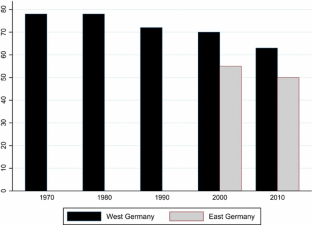 Source: ICTWSS: Database on Institutional Characteristics of Trade Unions, Wage Setting, State Intervention and Social Pacts in 51 countries between 1960 and 2014 (figures for 1970–1990, see http://www.uva-aias.net/208); German Establishment Panel (figures for 2000–2010, see Fischer et al. 2008, 2009)