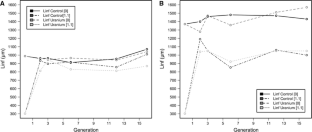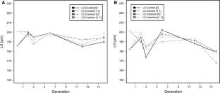 Maximal length (L inf ) for male individuals (µm) as a function of the generation for MGC (Control population) and MGU (Uranium population) exposed to 0 mM U, 0.1 mM U, 0.3 mM U, 0.5 mM U, 0.9 mM U, 1.1 mM U, and 1.2 mM U. Each point represents the L inf value of the model (Eq. 1) fitted using all replicate for each treatment. (PNG 675 kb)