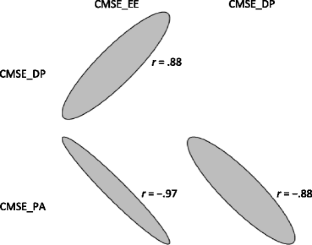 The Pearson product-moment correlations (r ij ) between the four variables of interest [classroom management self-efficacy, emotional exhaustion, depersonalization, and (lowered) personal accomplishment) were extracted from each study. Then the reliability information from each study was used to correct the correlations for attenuation (Hunter and Schmidt 1990). Specifically, \( E{S}_{ij}={r}_{ij}/\sqrt{r_{ii}}\sqrt{r_{jj}} \), where ES ij is the unattenuated correlation, r ij is the correlation extracted for the manuscript between variable i and variable j, and r ii and r jj are the reliabilities associated with variables i and variable j, respectively. The variance for each ES ij was computed as V r = v(r)/a 2, where v(r) = ((1 − r ij 2)2)/(n − 1), and a = r ij /ES ij (Borenstein et al. 2009 p. 343). The asymptotic covariance between each pair of ES ij was estimated using the asymptotic covariance between correlations (Becker 2000; Olkin and Siotani 1976, p. 238) as
