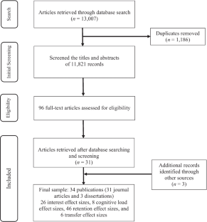 None of the existing reviews or meta-analyses have focused on personalized learning that accommodates learners’ interests. To address this issue, we conducted this meta-analysis to examine the effects of personalized learning by interest on self-reports of interest and cognitive load, retention, and transfer, as well as potential moderators of these effects. Based on 26 interest effect sizes (n = 5,335), 8 cognitive load effect sizes (n = 1,228), 46 retention effect sizes (n = 5,991), and 6 transfer effect sizes (n = 375) from 34 publications, our analysis revealed that a) personalized learning by interest had a medium-to-large effect on interest (g = 0.55), a medium-to-large effect on cognitive load (g = 0.54), a medium effect on retention (g = 0.48), and a medium effect on transfer (g = 0.36); b) the effect on interest was moderated by the diagnostic approach, grain size, and the domain, c) the effect on retention varied across learners from different continents, and d) the effect on retention was larger for quasi-experimental studies than experimental studies. Results are discussed in terms of their implications, limitations, and potential to inform future research.