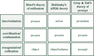 Sfard, A. (1991). On the dual nature of mathematical conceptions: Reflections on processes and objects as different sides of the same coin. Educational Studies in Mathematics, 22(1), 1–36.