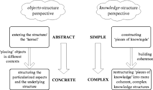 The initial assumption of this article is that there is an overemphasis on abstraction-from-actions theoretical approaches in research on knowing and learning mathematics. This article uses a critical reflection on research on students’ ways of constructing mathematical concepts to distinguish between abstraction-from-actions theoretical approaches and abstraction-from-objects theoretical approaches. Acknowledging and building on research on knowing and learning processes in mathematics, this article presents a theoretical framework that provides a new perspective on the underlying abstraction processes and a new approach for interpreting individuals’ ways of constructing concepts on the background of their strategies to make sense of a mathematical concept. The view taken here is that the abstraction-from-actions and abstraction-from-objects approaches (although different) are complementary (rather than opposing) frameworks. The article is concerned with the theoretical description of the framework rather than with its use in empirical investigations. This article addresses the need for more advanced theoretical work in research on mathematical learning and knowledge construction.