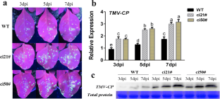 Expression levels of CRE1 were determined by qRT-PCR in the TMV- inoculated N. tabacum WT plants at 0, 3, 5 and 7 dpi. The error bars represent the means and the standard deviations of values that were obtained from three biological replicates at the indicated time points. Significant differences are denoted by different lowercase letters (TIF 28 kb)