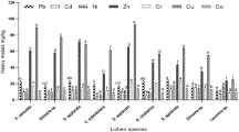 Bargagli, R., Monaci, F., Borghini, F., Bravi, F. and Agnorelli, C.: 2002, ‘Mosses and lichens as biomonitors of trace metals. A comparison study on Hypnum cupressiforme and Parmelia carperata in a former mining district in Italy’, Environ. Pollut. 116, 279–287.