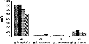 Terra, B. F., Araujo, F. G., Calza, A. F., Lopes, R. T., & Teixeira, T. P. (2008). Heavy metal in tissues of three fish species from different trophic levels in a tropical Brazilian river. Water, Air, and Soil Pollution, 187, 275–284.