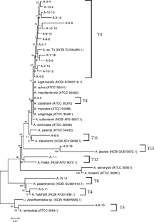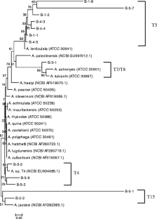 Stothard, D. R., Schroeder-Diedrich, J. M., Awwad, M. H., Gast, R. J., Ledee, D. R., Rodriguez-Zaragoza, S., et al. (1998). The evolutionary history of the genus Acanthamoeba and the identification of eight new 18S rRNA gene sequence types. The Journal of Eukaryotic Microbiology, 45, 45–54.