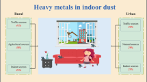 Zn, Pb, Cu, Cr, V, Ni, Co, and As concentrations of indoor dust in Anhui rural were determined by inductively coupled plasma–optical emission spectroscopy (ICP-OES). The degrees of metal pollution in indoor dust ranked as follows: Zn > Pb > Cr > Cu > V > Ni > Co > As, on average. The arithmetic means of Zn, Pb, Cu, Cr, V, Ni, Co, and As were 427.17, 348.73, 107.05, 113.68, 52.64, 38.93, 10.29, and 4.46 mg/kg, respectively. These were higher than background values of Anhui soil for Zn, Pb, Cu, Cr, and Ni, especially for Pb with the mean value of 13.21 times the background value. Heavy metal concentrations of indoor dust were different from different rural areas. House type (bungalows or storied house), sweeping frequency, and external environment around the house (such as the road grade) affected heavy metal concentrations in indoor dust. The results of factor analysis and correlation analysis indicated that Cu, Cr, Ni, Zn, and Co concentrations were mainly due to interior paint, metal objects, and building materials. Pb and As concentrations were due to vehicle emissions. V concentration was mainly of natural source. Average daily doses for the exposure pathway of the studied heavy metals decreased in children in the following order: hand-to-mouth ingestion > dermal contact > inhalation. The non-carcinogenic risks of heavy metals ranked as Pb > V > Cr > Cu > Zn > As > Co > Ni, and the carcinogenic risks of metals decreased in the order of Cr > Co > As > Ni. The non-carcinogenic hazard indexes and carcinogenic risks of metals in indoor dust were both lower than the safe values.
