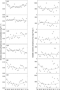 Data presented here were collected as part of the LTRM element of the UMRR Program which also supported the authors’ work on this manuscript. We thank the staff of the Minnesota DNR Lake City Field Station, the Wisconsin DNR La Crosse Field Station, the IA DNR Bellevue Field Station, and the Illinois Natural History Survey field station located at the National Great Rivers Research and Education Center for their extraordinary efforts in sample and data collection. JC Nelson provided graphical and GIS assistance, and other staff at the USGS Upper Midwest Environmental Sciences Center processed samples and provided data management support. Lori Sprague generously provided initial guidance regarding the use of WRTDS and a review of an early draft manuscript. This manuscript was also improved by reviews from John Barko, Barry Johnson, and two anonymous reviewers. Any use of trade, product, or firm names is for descriptive purposes only and does not imply endorsements by the US Government.