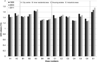 Unger, J., Sümeghy, Z., Gulyás, Á., Bottyán, Z., & Mucsi, L. (2001). Land-use and meteorological aspects of the urban heat island. Meteorological Applications, 8, 189–194.