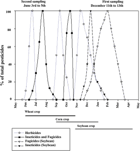 Lima, J. A. M. C., Labanowski, J., Bastos, M. C., Zanella, R., Prestes, O. D., de Vargas, J. P. R., et al. (2020). “Modern agriculture” transfers many pesticides to watercourses: a case study of a representative rural catchment of southern Brazil. Environmental Science and Pollution Research, 27, 10581–10598. https://doi.org/10.1007/s11356-019-06550-8.