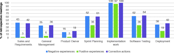 Second, the recorded retrospective statements were coded by using and extending an existing coding scheme. Based on the coding categories, a quantitative analysis was performed with respect to the topic types and process areas that were discussed in the retrospectives and the types of topics and areas for which corrective actions were developed.