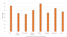 Nevertheless, Climate-smart agriculture (CSA) can help to avoid these negative outcomes by putting into consideration climate change in the planning and implementation of sustainable agricultural strategies (Atta-Aidoo et al., 2022). This involves building resilience to climate change through climate change adaptations strategies and the reduction in greenhouse gas emissions related to conventional practices in order to ensure sustainable agricultural productivity, food availability, and security for farming households (Ogundari & Bolarinwa, 2018; Abegunde et al., 2022). In addition, Ochieng (2018), reported that CSA practices like planting improved crop cultivars, agroforestry, soil mulching, changing planting dates, as well as crop diversification are the most effective and used climate change adaptation strategies in Nigeria.