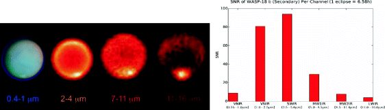 | 2D and 3D maps | Exoplanet image at multiple wavelengths | Ingress and egress eclipse spectra Orbital phase-curves Full orbit spectra | Rosetta Stone | |