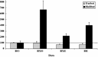 Tocher DR, Mourente G, Van der Eeken A, Evjemo JO, Diaz E, Bell JG, Geurden I, Lavens P, Olsen Y (2002) Effects of dietary vitamin E on antioxidant defence mechanisms of juvenile turbot (Scophthalmus maximus L.), halibut (Hippoglossus hippoglossus L.) and sea bream (Sparus aurata L.). Aquac Nutr 8:195–207