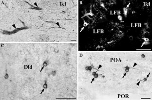 Virgili M, Poli A, Beraudi A, Giuliani A, Villani L (2001) Regional distribution of nitric oxide synthase and NADPH-diaphorase activities in the central nervous system of teleosts. Brain Res 901:202–207