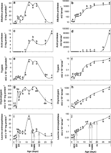 Moyano FJ, Diaz M, Alarcón FJ, Sarasquete MC (1996) Characterization of digestive enzyme activity during larval development of gilthead seabream (Sparus aurata). Fish Physiol Biochem 15:121–130