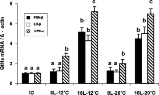Hellqvist A, Bornestaf C, Borg B, Schmitz M (2004) Cloning and sequencing of the FSH-β and LH-β subunit in the three-spined stickleback, Gasterosteus aculeatus, and effects of photoperiod and temperature on LH-β and FSH-β mRNA expression. Gen Comp Endocrinol 135:167–174