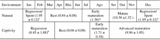 This work was supported by a research grant from FAPESP (01/10483-1) and a Master's student fellowship (CNPq 134451/2005-8). The authors would also like to thank the fishermen who collected the wild females as well as the Ponte Nova Fish Farm for providing the facilities for the maintenance of the captive animals.