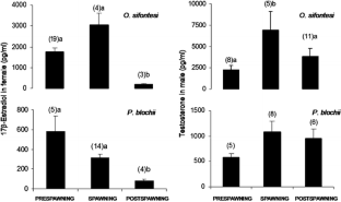 Singh S, Singh TP (1987) Seasonal profiles of sex steroids in blood plasma and ovarian tissue of Clarias batrachus. Gen Comp Endocrinol 65:216–224. doi:10.1016/0016-6480(87)90169-9