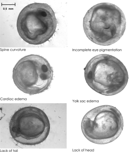 Early developmental stages of fish are particularly sensitive to water pollution. Heavy metals may affect various developmental processes during the embryonic period, which results in a reduction of offspring quantity and quality. Waterborne metals may accumulate in the gonads of spawners and adversely affect gamete production and viability, or exert direct toxic influence upon developing embryos. The egg shell does not fully protect the embryo against metal penetration, particularly during the swelling phase; thus, metals may accumulate in the egg. The results depend on metal concentration and range from developmental disturbances to death of the embryo. Metals disturb various processes of fish embryonic development and affect the development rate. Early stages just after fertilization are particularly sensitive to metal intoxication, when most disturbances and the highest embryonic mortality occur. Waterborne metals also promote developmental anomalies during organogenesis, including body malformations. Heavy metals often induce a delay in the hatching process, premature hatching, deformations and death of newly hatched larvae. All these disturbances result in reduced numbers and poor quality of the larvae, which show small body size, high frequency of malformations and reduced viability.