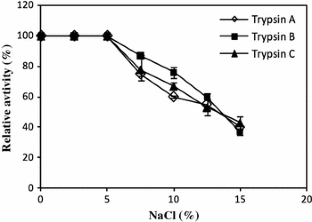 Balti R, Barkia A, Bougatef A, Ktari N, Nasri M (2009) A heat-stable trypsin from the hepatopancreas of the cuttlefish (Sepia officinalis): purification and characterization. Food Chem 113:146–154