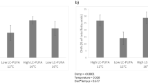 Tocher DR, Sargent JR (1990) Effect of temperature on the incorporation into phospholipid classes and the metabolism via desaturation and elongation of (n-3) and (n-6) polyunsaturated fatty acids in fish cells in culture. Lipids 25:435–442