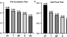 Mano Y, Nakazumi H, Takeda K (1996) Varietal variation in and effects of some major genes on salt tolerance at the germination stage in barley. Breed Sci 46:227–233