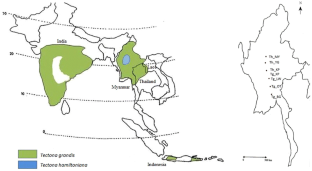 Minn Y, Prinz K, Finkeldey R (2014) Genetic variation of teak (Tectona grandis Linn. f.) in Myanmar revealed by microsatellites. Tree Genet Genom 10:1435–1449