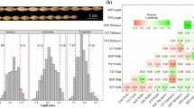 The correlation between HIS content in population grain and 12 morphological characters is presented in Table 2. The HIS content was significantly or very significantly correlated with six traits. Significant negative correlation was found with available spike and panicle weight per plant. Extremely significant positive correlation was found with invalid spike and blighted grains. Extremely significant negative correlation was found with number of solid grains and setting rate. Further analysis showed that the HIS content in the grain was most closely related to setting rate, and the correlation coefficient was − 0.34. The correlation between histidine and 12 morphological traits showed that the morphological traits of histidine and barley yield were significant or negative. Thus, increasing barley grain yield might reduce histidine content.