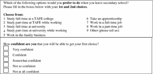 Some students will ultimately complete (or at least commence) a TAFE course with the view of enrolling in a University Degree. However, it is important to note that we are dealing with the student’s aspirations. How they achieve their aspirations is not of concern to this paper.
