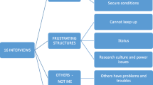 The survey data (N = 479) were collected on Jisc Online surveys platform (onlinesurveys.ac.uk) between December 2018 and July 2019. All UK-based PGRs registered for research-focussed master’s or PhD programmes were eligible to participate (excluding taught, clinical, or professional doctorates) regardless of mode of study (full-time/part-time, on-campus/distance, active/suspended). PGRs from 47 universities across the UK took part. PGRs at a large research-focused UK institution were invited to complete the survey via institutional email (16% response rate), while others were recruited via social media and PGR networks. While survey data were collected from 47 universities in the UK, 5 focus groups (n = 20; all PhD students) were conducted and audio-recorded by JM in February 2019 at one large university with survey respondents who agreed to further participation. Recordings were transcribed and anonymised professionally. Demographic information for the survey and focus group participants are reported in Supplementary File 2.