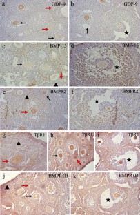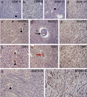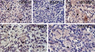 Silva JR, van den Hurk R, van Tol HT, Roelen BA, Figueiredo JR (2005) Expression of growth differentiation factor 9 (GDF-9), bone morphogenetic protein 15 (BMP-15), and BMP receptors in the ovaries of goats. Mol Reprod Dev 70(1):11–19