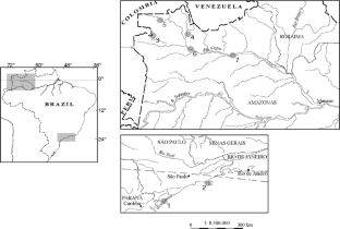 In the Amazon: program on “Biological Resource Management in the Amazon: Varietal Diversity of the Manioc and its Integration in Production Systems,” 1998–2000, supported by CNPq-ISA / IRD cooperation (process 910211/97-3), coordinated by L. Emperaire and G. Andrello, and funded by CNPq (BR) Genetic Resource Office, IRD and CNRS (FR). Field research participants: L. Emperaire, F. Pinton, S. Desmoulière, G. Le Blanc and L. van Velthem. Laboratory research participant: G. Santos Mühlen. In the Atlantic Forest: Ph.D. thesis (N. Peroni): “Ecology and Manioc Genetics in the Itinerant Agriculture of the Southern São Paulo State Coastline: a Spatial and Temporal Analysis”. Supported by FAPESP (process 97/14514-1) and CNPq 2000–2004; (Ph.D. thesis advised by P. Y. Kageyama and A. Begossi) and Post-Doctorate, under the title “Inter and Intra-Specific Diversity of Cultivated Species: Species Management and Fields in the São Paulo State Caiçara Community Land and Sea Use Context.” Supported by FAPESP, processes 01/05263-2 and 03/13688-9 (Coordinated by N. Peroni, A. Begossi, UNICAMP).