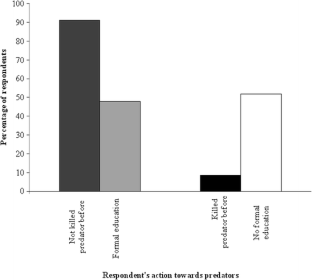 Parry D., and Campbell B. (1992). Attitudes of rural communities to animal wildlife and its utilization in Chobe enclave and Mababe depression, Botswana. Environmental Conservation 19: 245–252.
