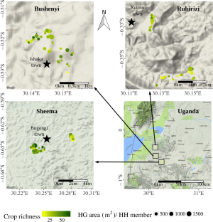 Whitney, C. W., Tabuti, J. R. S., Hensel, O., Yeh, C.-H., Gebauer, J., and Luedeling, E. (2017). Homegardens and the future of food and nutrition security in southwest Uganda. Agricultural Systems 154: 133–144.