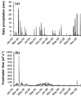 Mallin, M. A., H. W. Paerl, J. Rudek & P. W. Bates, 1993. Regulation of estuarine primary production by watershed rainfall and river flow. Marine Ecology Progress Series 93: 199–203.