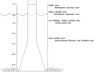 In recent years, offshore wind energy in the shelf seas of the southern North Sea is experiencing a strong growth. Foundations are introduced in mainly sandy sediments, and the resulting artificial reef effect is considered one of the main impacts on the marine environment. We investigated the macrobenthic fouling community that developed on the concrete foundations of the first wind turbines built in Belgian marine waters. We observed a clear vertical zonation, with a distinction between a Telmatogeton japonicus dominated splash zone, a high intertidal zone characterised by Semibalanus balanoides, followed by a mussel belt in the low intertidal–shallow subtidal. In the deep subtidal, the species turnover was initially very high, but the community was soon dominated by few species (Jassa herdmani, Actiniaria spp. and Tubularia spp.), and only seasonal dynamics within this species assemblage were observed after 1–1½ years. Ten non-indigenous species (NIS) were found. In the intertidal, eight out of the seventeen typical intertidal species observed were NIS, while only two out of a species pool of 80 species were NIS in the deep subtidal. NIS were found to use the foundations to expand their range and strengthen their strategic position in the area.