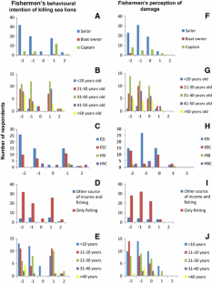We analysed the fishermen’s perceptions on the South American sea lions (Otaria flavescens) and its interactions with the local fishery close to the Wildlife Refuge of Ilha dos Lobos, a marine protected area in southern Brazil. Sea lions prey upon the same resources targeted by the fishermen. They repeatedly hunt on the nets and consequently damage them. In response, fishermen persecute sea lions. However, in conflicts with high-profile animals, the perceived damage often exceeds the actual evidence. Results from 100 interviews revealed that fishermen’s perception of damage and their attitudes were affected by age, hierarchical position in the crew, if fishing was the only source of income, and level of formal education. Greater perception of damage and more negative attitude were found among older, less educated sailor fishermen who had no other source of income besides fishing. The average fisherman had a relatively good knowledge about sea lions, but also a negative attitude towards them. We recommend actions addressing these negative attitudes through environmental education, with emphasis on adjusting exaggerated perceptions of impact and the potential of the species for wildlife tourism, as a vital step towards the conciliation of sustainable fisheries and O. flavescens conservation in the Brazilian coast.