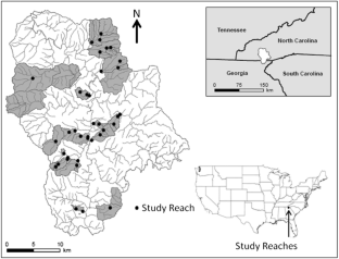 This study was part of the Coweeta Long Term Ecological Research study funded by National Science Foundation DEB0823293. It was supported by the Odum School of Ecology and the Warnell School of Forestry and Natural Resources at the University of Georgia. D. Hung, C. Kresl, L. Long, J. McMillan, J. Milanovich, S. Evans, S. Vulova, J. Cosgrove, and others provided critical field work. F. Benfield, D. Leigh, M. Valett, and J. Webster led collection of stream chemistry data. J. Hepinstall-Cymerman determined land cover in each catchment. J. Chamblee, K. Love, J. McDonald, and R. Benson produced the study area graphic. The USDA Forest Service provided key logistical support. M. Freeman, M. Snyder, S. Wenger, the Pringle lab, N. Bond, and three anonymous reviewers provided valuable comments on the manuscript.