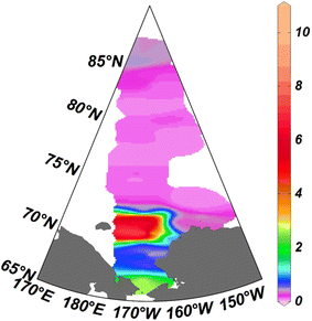 Hill, V. & G. Cota, 2005. Spatial patterns of primary production on the shelf, slope and basin of the Western Arctic in 2002. Deep-Sea Research II 52: 3344–3354.