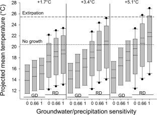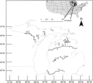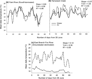 The lead author thanks Bruce Vondracek (emeritus USGS Minnesota Cooperative Fish and Wildlife Research Unit, University of Minnesota) for inspiring him to become a fisheries scientist. We thank the Editors and Reviewers for helpful comments that improved this manuscript. We thank Jennifer Moore Myers (United States Forest Service Eastern Forest Environmental Threat Assessment Center) and Stacy Nelson and Ernie Hain (North Carolina State University) for assisting with air temperature data acquisition and projection models. We thank Kyle Herreman and Wesley Daniel (Michigan State University [MSU]); Troy Zorn, Tracy Kolb, and Todd Wills (Michigan Department of Natural Resources); and Henry Quinlan (United States Fish and Wildlife Service) for assisting in procurement of environmental and brook charr population data for this study. Further, we acknowledge the Programme for Climate Model Diagnosis and Intercomparison (PCMDI) and the WCRP’s Working Group on Coupled Modelling for their helpful guidance regarding use of the WCRP CMIP3 multimodel data set. We especially wish to thank Than Hitt (United States Geological Survey) for thought-provoking discussion at the 2015 conference “Advances in the Population Ecology of Stream Salmonids IV” that informed development of this paper. The first author thanks the many donors and funding sources that made it possible to conduct the research leading to this paper, including the University Distinguished Fellowship (MSU), the MSU Graduate School, the MSU Department of Fisheries and Wildlife, the Robert C. Ball and Betty A. Ball Fisheries and Wildlife Fellowship (MSU), the Schrems West Michigan Chapter of Trout Unlimited Fellowship, the Red Cedar Fly Fishers Graduate Fellowship, and the Fly Fishers International Conservation Scholarship.