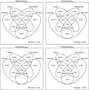 Baselga, A., 2010. Partitioning the turnover and nestedness components of beta diversity: partitioning beta diversity. Global Ecology and Biogeography 19: 134–143.