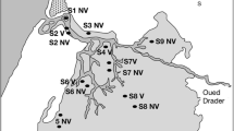 Fresh sediment for grain size and organic matter analysis was stored at − 20°C. Grain size distribution was determined by passing dried sediment (124.5 ± 36.3 g DM) through a series of 8 nested sieves (mesh sizes ranging from 0.112 mm to 3.55 mm) on a sieve shaker. The obtained D25 and D75 values were used to calculate Trask’s sorting coefficient as (D75/D25)0.5. Sediment organic matter content (%) was determined as difference of dry mass (48 h at 60°C) and ash free dry mass (4 h at 550°C).
