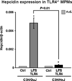 Lee, P., H. Peng, T. Gelbart, and E. Beutler. 2004. The IL-6- and lipopolysaccharide-induced transcription of hepcidin in HFE-, transferrin receptor 2-, and beta 2-microglobulin-deficient hepatocytes. Proc Natl Acad Sci USA 101: 9263–5.