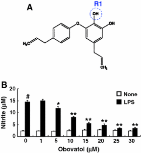 Choi MS, Lee SH, Cho HS et al (2007) Inhibitory effect of obovatol on nitric oxide production and activation of NF-kappaB/MAP kinases in lipopolysaccharide-treated RAW 264.7 cells. Eur J Pharmacol 556:181–189