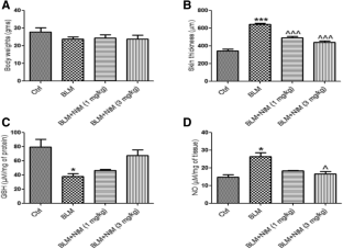 Male C57BL/6 mice were administered with Bleomycin injections subcutaneously, daily for 28 days, at a constant site on the dorsum of the mice. Treatment with nimbolide lasted from day 1 to day 28. At the time of study termination, the injected sites were collected and stored suitably to conduct further molecular experiments and protein expression studies.