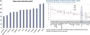 Most notably, Rodríguez-Pose and Di-Cataldo (2015) and Ganau and Rodríguez-Pose (2019) study the relationship between firm performance and regional quality of governance indicators in Europe. These indicators are computed from survey data, reporting the assessments of “experts,” entrepreneurs, and common citizens (Charron et al. 2014).