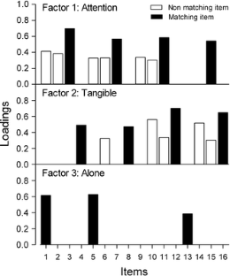 Paclawskyj, T. R., Matson, J. L., Rush, K. S., Smalls, Y., & Vollmer, T. R. (2001). Assessment of the convergent validity of the questions about behavioral function scale with analogue functional analysis and the motivation assessment scale. Journal of Intellectual Disability Research, 45, 484–494.