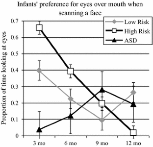Merin, N., Young, G. S., Ozonoff, S., & Rogers, S. J. (2007). Visual fixation patterns during reciprocal social interaction distinguish a subgroup of 6-month-old infants at risk for autism from comparison infants. Journal of Autism and Developmental Disorders,