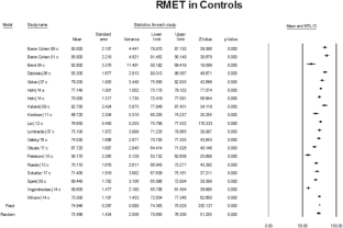 We conducted a meta-analysis of 18 studies to establish whether a relation exists between Reading the Mind in the Eye Test (RMET) performance and intelligence quotient (IQ) in individuals diagnosed with autism-spectrum disorders (ASD) and controls, taking into account relevant characteristics such as age, gender, and autism quotient. Our findings indicate that RMET performance was better in controls compared with those diagnosed with ASD. We found that RMET performance is dependent on full and verbal IQ and age in controls. However, RMET performance is negatively correlated with performance IQ in individuals diagnosed with ASD. These results suggest that the methodology applied by ASD when taking the RMET is different from control individuals and might depend less on verbal abilities.